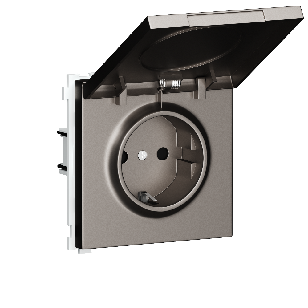 Розетка встраиваемая Donel R98 Schuko с крышкой и заземлением на клеммах Сталь матовая DA17700-DA52037