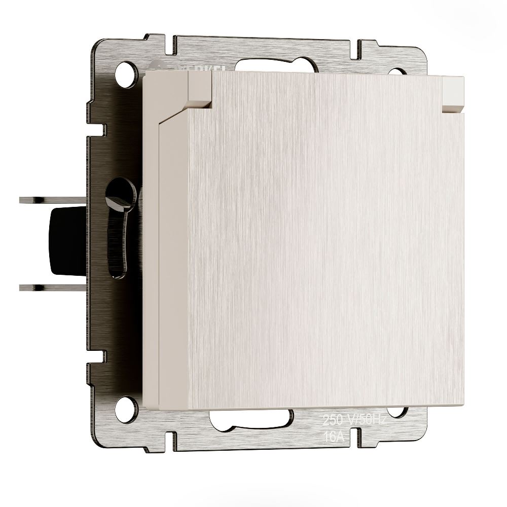 Розетка встраиваемая влагозащищенная Werkel с заземлением, шторками и защитной крышкой Перламутровый рифленый W1171213